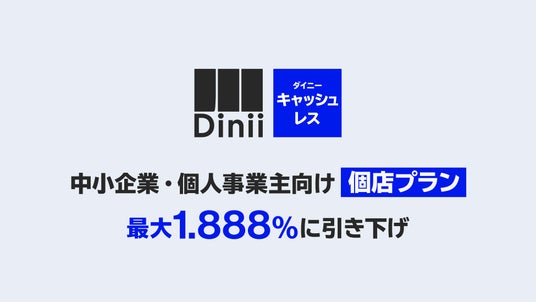 2024年9月19日にサービス提供開始を発表した飲食店専用の決済サービス「ダイニーキャッシュレス」(※1)は、一定の条件を満たした中小企業・個人事業者を対象に、決済手数料を最大1.888%に引き下げた業界最安級の「ダイニーキャッシュレス 個店プラン」の提供を開始します。対象となるカードブランドは、Visa、Mastercard、JCB、Dinersの4種類で、導入費用、月額費用、振込手数料は無料です。