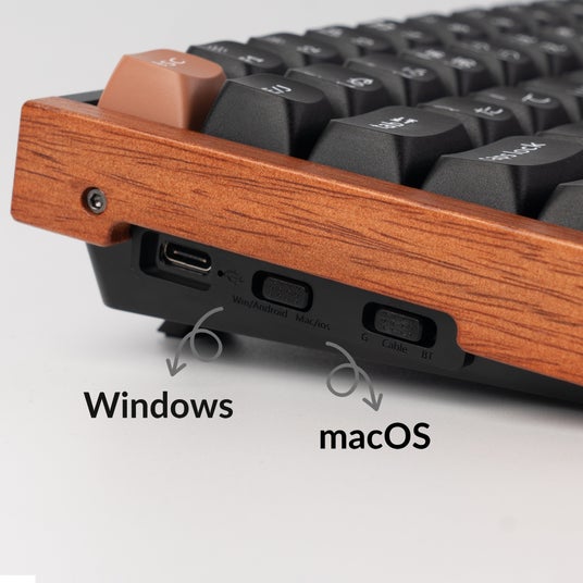 Keychron(キークロン)より販売される「Keychron K2 HE」は、天然木の美しいデザインと、最新の磁気センサースイッチを融合した次世代のキーボードです。Windows、Mac両OSに対応し、Bluetooth接続で最大3台のデバイスとペアリング可能。また、2.4GHz対応の高速ワイヤレス接続も備え、どんなデバイスでも快適なタイピングを提供します。