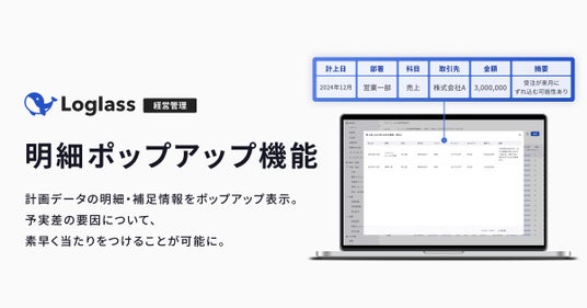 クラウド経営管理システム「Loglass」が、計画データの「明細ポップアップ機能」を提供開始
