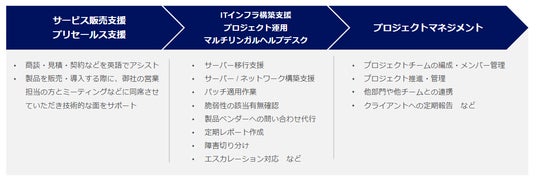本サービスでは、そのような悩みをお持ちのお客さまに、アイエスエフネットの豊富なバイリンガルエンジニアが日本から遠隔でITサービスを提供することでお客さまの課題解決に貢献いたします。