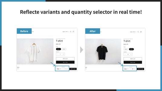 ■バリアントや数量ピッカーをリアルタイムで反映できる!