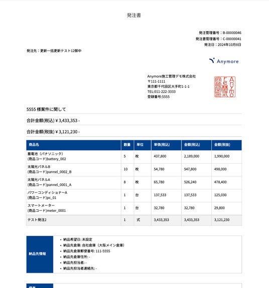発注管理機能Anymore施工管理では、案件に紐づけて発注を管理し、ワンクリックで発注書を作成できる発注管理機能を提供しています。