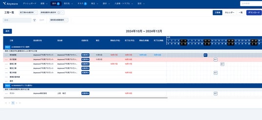 案件管理機能Anymore施工管理の案件管理機能では、案件に紐づける形で、現場情報や工程情報をはじめ、各種情報を一元管理することができます。