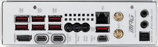 リアIOパネルにはUSB 10Gbps Type-A x7 / Type-C x1、Thunderbolt(TM)4 Type-C x2という、高速で豊富なUSBオプションを備えています。また、CMOSクリアボタンも搭載しているため、BIOS設定のリセットに全く手間がかかりません。
