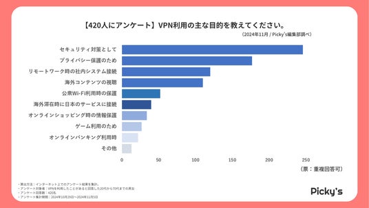 「Picky’s」は、インターネットショッピングにおいて、購入前に試せない・選ぶべきものがわからないという課題の解決を目標に、あらゆる商品・サービスのおすすめランキングや検証レビューを紹介するサイトです。このたびPicky’s(https://picky-s.jp/)では、VPNサービスについてインターネット上でアンケート調査を行いましたので発表いたします。