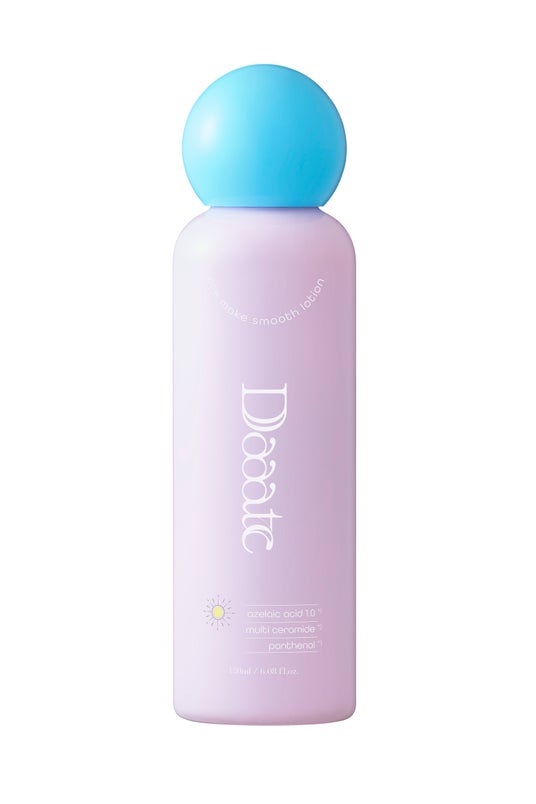 Daaate プレメイクスムースローション 180ml 1,540円(税込)純度99%のピュアアゼライン酸(※1)×機能性パウダー成分(※2)を配合。うるおいは逃さず、肌表面のテカリは抑えて(※3)、メイク前も日中もスムースな肌へ。