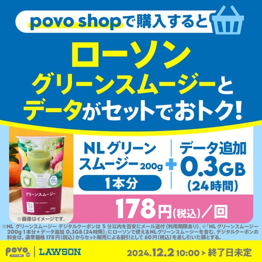 povo、ローソン「生チョコトリュフ クリーム入り」「グリーンスムージー」がセットのデータトッピングを提供