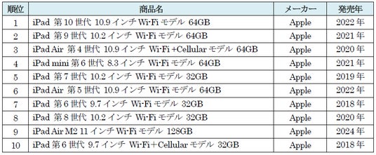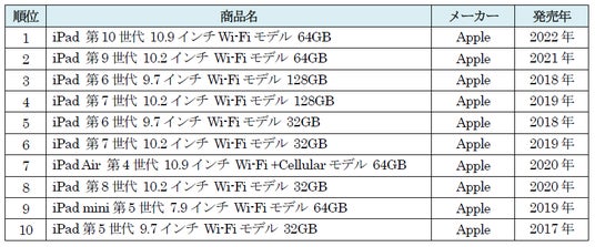 また、買取のランキングでは今年発売の「iPad Air M2 11インチWi-Fiモデル 128GB」も9位にランクインするなど、買い替えのサイクルがスマホよりも早く、発売から5年以内の商品が上位を多く占めています。