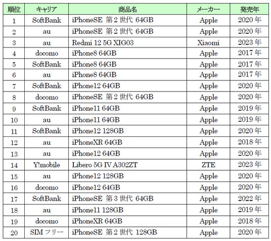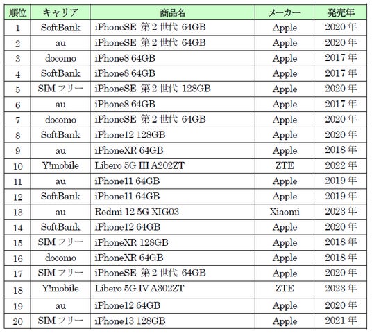 ~「iPhone SE(第2世代)」「iPhone8」が根強い人気で上位を独占!~