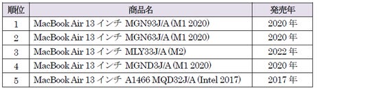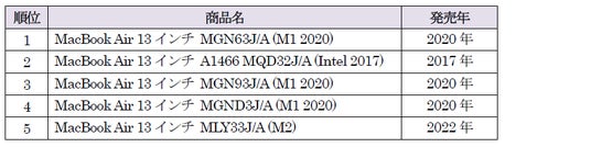 なお、新品の販売価格が上昇したことから、中古市場においては2020年発売のM1チップ搭載モデルの人気は当面継続すると見込んでいます。