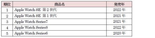 販売では、SEシリーズは比較的安価で手に取りやすいため、人気が高くなりました。3位の「Apple Watch Series7」は、新シリーズ発売に伴い価格が下がり販売数が伸びたとみられます。