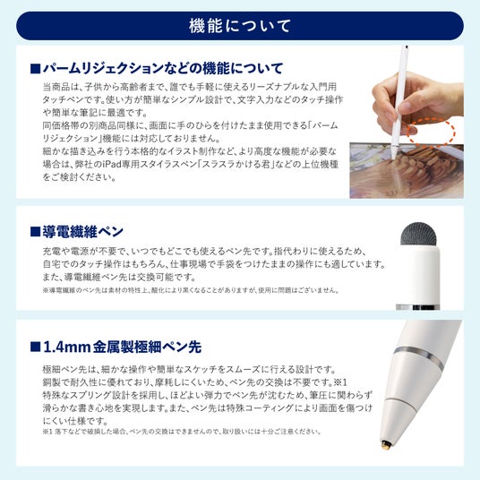 4. 極細1.4mmペン先で、細かい操作もバッチリ!