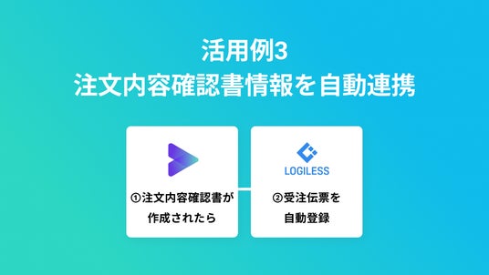 DEXTREで注文内容確認書が作成されたら、LOGILESSに受注伝票を自動登録するフローです。