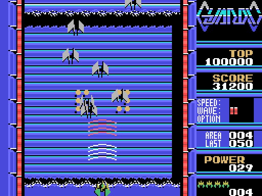 本作は1986年に発売されたシューティングゲーム。プレイヤーは自機を操作して次々に登場する敵と戦いながら、どこかに存在する敵母艦の破壊を目指します。