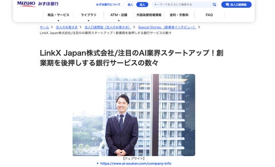 LinkX Japan 株式会社 みずほ銀行に注目のAI業界スタートアップ!として掲載されました