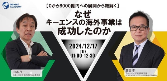 グローバル人材育成・研修業を手掛けるインサイトアカデミー株式会社(本社:東京都港区新橋、代表:金 珍燮)は、無料webセミナー「【0から6,000億円への展開から紐解く】なぜキーエンスの海外事業は成功したのか」を2024年12月17日(火)11:00より開催します。