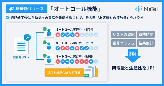 株式会社RevComm(レブコム、本社:東京都渋谷区、代表取締役:會田武史)が提供する電話解析AI「MiiTel Phone」に、発信作業を自動化する「オートコール機能」をリリースしました。
