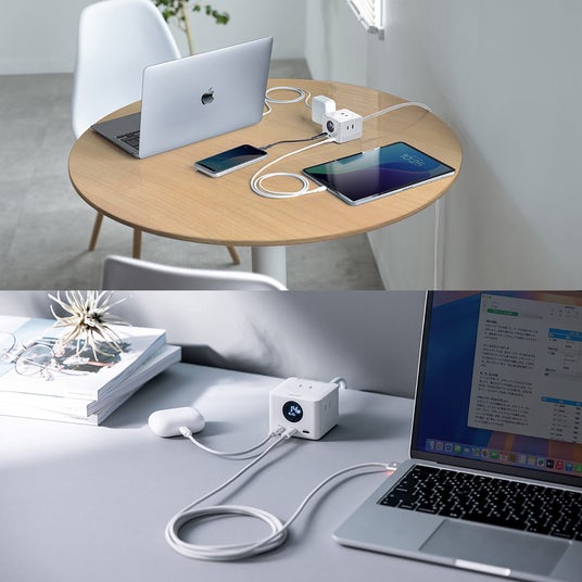 ノートパソコン、タブレット、スマートフォンなど多様なデバイスを1台でカバーする充電機能を搭載。USB Type-Cポートが3つ、さらにACコンセントが3口あるため、デスク回りや旅行先でもこれ1台で充電環境を整えられます。複数のデバイスを同時に充電できるので、大変おすすめです。