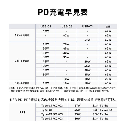 ・USB PD×3ポートとコンセント×3口で多くの機器を充電可能