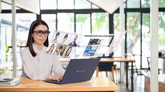 さらに、本商品を PC に接続することで、新幹線や喫茶店など、作業空間が限られた環境においても、仮想マルチスクリーン上で作業に取り組むことができる、オフィスソリューションを展開します。