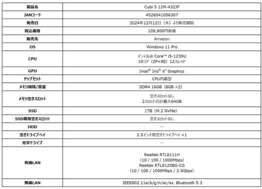 Thunderbolt(TM) 4搭載ミニPC VESAマウント・最大3画面のマルチモニターに対応 Amazon限定モデル「Cubi 5 12M-432JP」発売