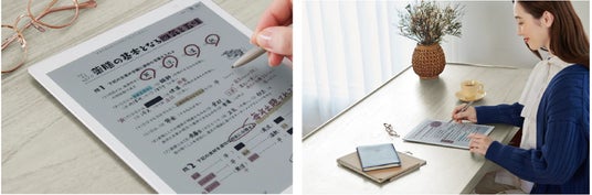 新しいクアデルノでは、従来機の薄さ、軽さ、書き心地はそのままに、表示のカラー対応により視覚的な整理や学習効果の向上、ビジネス用途での利便性拡大に加え、音楽演奏を楽しむお客様の場合には、楽譜への「赤入れ」やポイントの書き込みが容易になり、演奏時の重要なポイントを視認しやすくなるなどの効果も期待されるなど、多様なシーンでご活用いただけます。