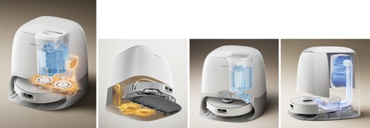 ・モップ洗浄、乾燥、給水、ゴミ収集を任せることができる、デザインが美しい4way全自動ドックQ3を搭載