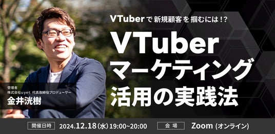 VTuber、IPコンテンツを通して日本と世界で新たな流通を生み出す“IPコンテンツの総合商社”株式会社uyet(ユエット)(本社:東京都渋谷区、代表取締役:金井洸樹・梶田大樹)は、2024年12月18日(水)19:00よりウェビナー「VTuberで新規顧客を掴む:マーケティング活用の実践法」を開催します。