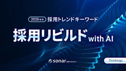 組織づくりのプラットフォーム「sonar HRテクノロジー」を展開するThinkings株式会社(シンキングス、本社:東京都中央区、代表取締役社長:吉田 崇)は、「2026年卒採用トレンド予測」を発表しました。sonar ATS内のデータ、採用担当者と就活生へ実施したアンケート調査結果、採用成功事例などをもとに、2026年卒の新卒採用ではAI活用の本格化による「採用リビルド(再構築)」が進むと予測します。変化が大きい社会環境の中、より良い採用・組織づくりを実現するヒントを提示することを目指し今年も発表しました。