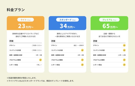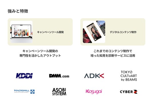 こうしたデジタルマーケティングに関する知見を活かし、高コストや制作負荷の高さが課題とされていた診断コンテンツの制作を、リーズナブルな価格で一括して代行することで、企業のプロモーション活動を前進させることを目指して誕生したのが、この『診断・クイズ・投票コンテンツ制作代行サービス』です。