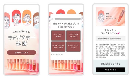 本サービスでは、「リップカラー診断」や「温泉検定」、「推しのお菓子投票」のような、オリジナル診断コンテンツを高品質かつスピーディーにご提供いたします。