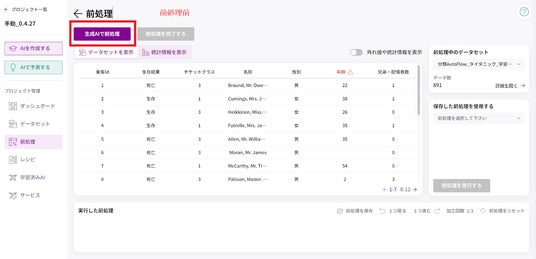 ・生成AIによる前処理画面