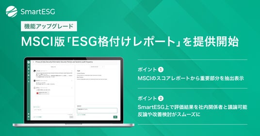 SmartESG、「ESG格付けレポート」機能をアップグレード。「MSCI」のレポートに対応開始し、フィードバック支援機能を追加