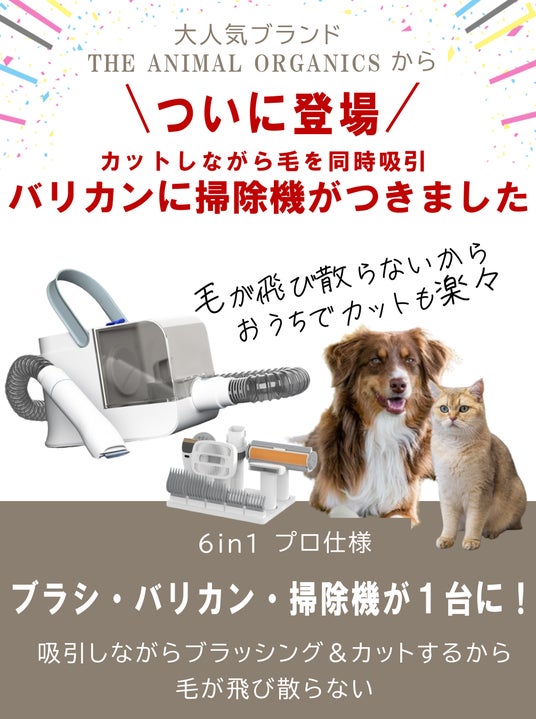 【第二弾】THE ANIMAL ORGANICSからついに登場。ブラシ・バリカン・掃除機が1台になった愛犬愛猫用グルーミングマシンを企画、クラウドファンディングに挑戦します!