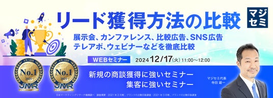 マジセミ株式会社は「リード獲得方法の比較」というテーマのウェビナーを開催します。