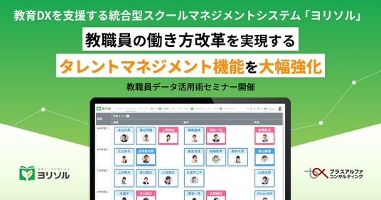 株式会社プラスアルファ・コンサルティング(本社:東京都港区、代表取締役社長:三室克哉、証券コード4071)は、教育データを見える化し、教職員の負担軽減と教育DXの実現を支援する統合型スクールマネジメントシステム「ヨリソル」において、教職員の働き方改革を実現するため、タレントマネジメント機能を大幅に強化したことをお知らせいたします。