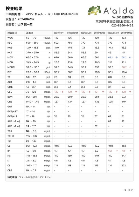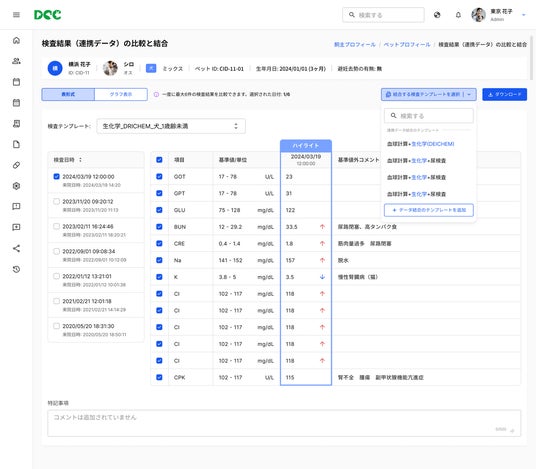 - 検査結果が機器側からVet360に自動で取り込まれ、また検査項目ごとにテンプレートのカスタマイズが可能です。