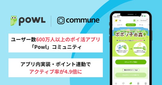 コミュニティサクセスプラットフォーム「Commune(コミューン)」を提供するコミューン株式会社は、株式会社PTXが開発・運営を行うポイ活アプリ「Powl(ポール)」内にCommuneを活用したコミュニティを実装し、アプリとのポイント連動を行ったことで、コミュニティの月間アクティブユーザー(MAU)が4.9倍となったことをお知らせします。コミュニティは、アプリ内への埋め込み前は独立したコミュニティサイトとして運営していました。