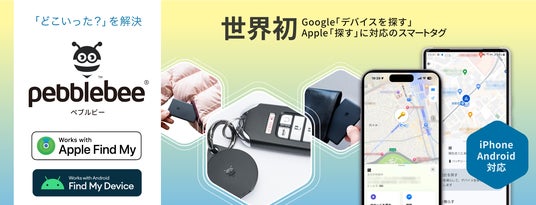 世界初、Apple「探す」とGoogle「デバイスを探す」に対応 スマートタグが日本初上陸 「Pebblebee(ペブルビー)」12月12日(木)より販売開始