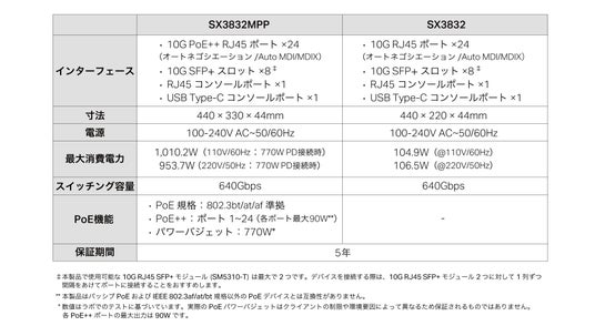 【TP-Linkからフル10Gスイッチついに登場!】Omada フル10G L2+スイッチングハブ「SX3832MPP」「SX3832」販売開始