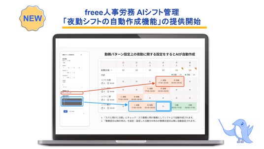 フリー株式会社(本社:東京都品川区、CEO:佐々木大輔、以下「freee」)は、AIでシフトを自動作成できるサービス「freee人事労務 AIシフト管理」において、夜勤シフトの自動作成機能の提供を開始しました。