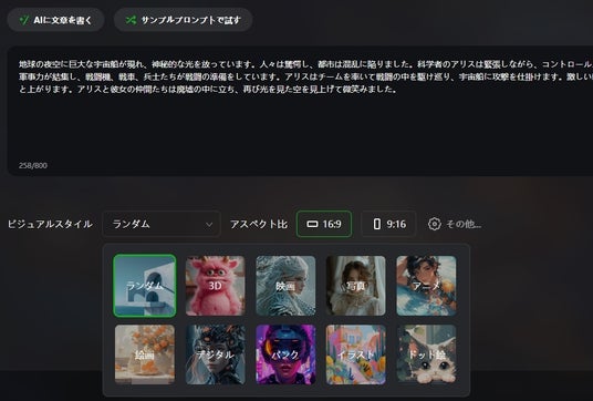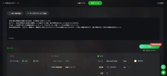 - アスペクト比、ナレーション、BGM、字幕の設定が可能