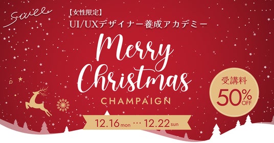 女性限定:UI/UXマスター養成オンラインアカデミー『Swee(スウィー)』(代表:円山 颯流)は2024年12月16日(月)から2024年12月22日(日)までの期間限定で、UI/UXデザイナー養成講座を50%割引で提供する「クリスマス早割キャンペーン」を実施いたします。