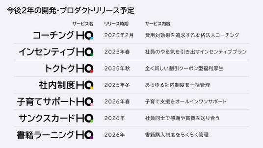 新しい福利厚生のHQ、「コーチングHQ」「子育てサポートHQ」「書籍ラーニングHQ」など7つの新プロダクトを発表