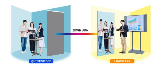 NTT西日本が運営する「QUINTBRIDGE」と「LINKSPARK OSAKA」の2拠点を「IOWN APN」で接続し、両拠点にいる人物が「tonari」を通じて、ボディランゲージや目線などのノンバーバルコミュニケーション含めたリモートでのコミュニケーションがスムーズに実施できることを確認します。
