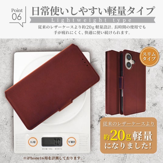従来型のレザーケースより軽量なので、長時間のスマホ使用でも疲れにくい。