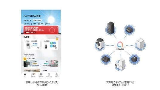 日立グローバルライフソリューションズ株式会社(以下、日立GLS)は、日立の家電品がより便利に使える家事サポートアプリ「ハピネスアップ」(*3)に、ご使用中のコネクテッド家電(冷蔵庫・洗濯機) (*1) (*2)の製品本体で不具合(*4)が発生した場合に、発生通知から修理のお申し込みまでワンストップで対応することができる新機能「家電の救急アラート」(以下、本機能)を追加したバージョンアップ版アプリのダウンロード配信を、本日から開始しました。