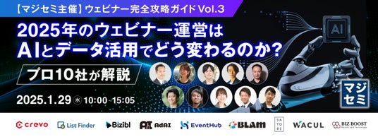 マジセミ株式会社は「2025年のウェビナー運営は、AIとデータ活用でどう変わるのか?プロ10社が解説」というテーマのウェビナーを開催します。