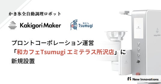 株式会社New Innovations(本社:東京都江東区、代表取締役CEO兼CTO:中尾 渓人、以下「New Innovations」)は、株式会社プロントコーポレーション(本社:東京都港区、代表取締役社長:杉山 和弘)が運営する「和カフェ Tsumugi エミテラス所沢店」に、かき氷機と自動連携する全自動調理ロボット「Kakigori Maker」を新たに導入したことをお知らせいたします。
