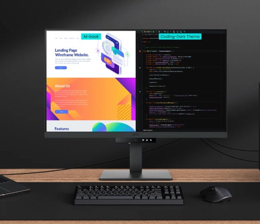 また、90W給電が可能なUSB Type-Cポートを備えるほか、最大4台の外付けモニターに拡張可能なデイジーチェーン接続に対応し、接続性の高さも特長となっています。さらに、1つのモニターに対して2つのPCを接続・切り替えができるKVMスイッチ、ライト・ダーク2種の切り替えが可能なコーデイングモードも搭載しています。